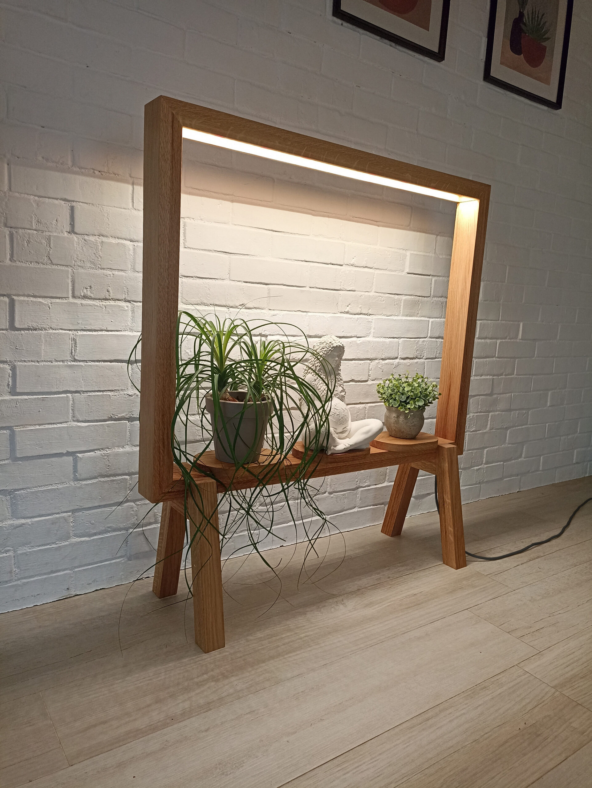 Артикул: Н/Д Категория: Рамка для цветов Метки: деревянная рамка для цветов, массив дуба, модерн, полка для цветов с подсветкой фито, полностью светодиодная подсветка, светильник для растений, фито подсветка для цветов
