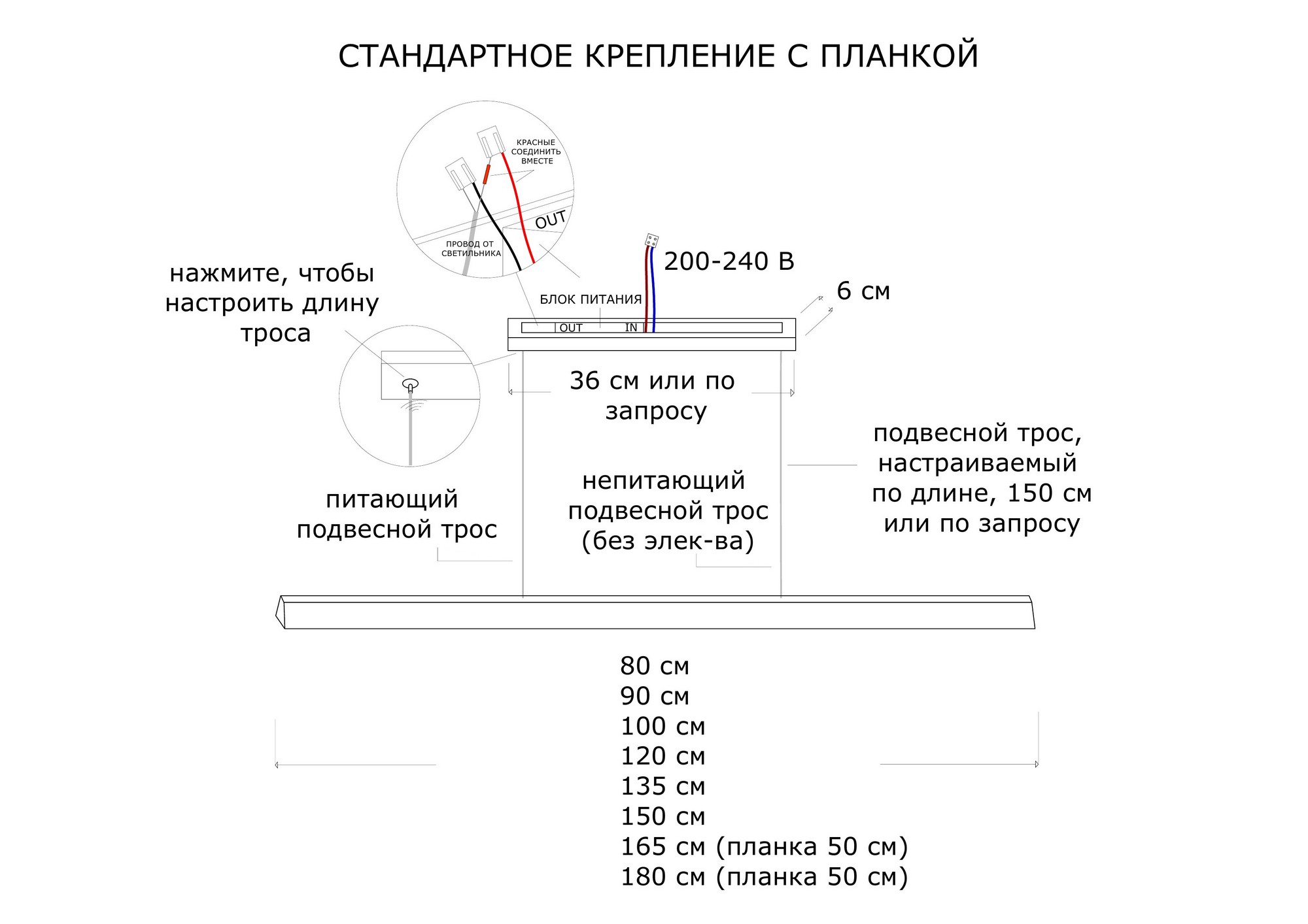 – светлый нейтральный свет (4000К) - Электропитание: от сети 100-240 Вольт. Подключение к проводу в потолке (см. схему). Шнур прозрачный (по умолчанию) / черный / белый, длина от 100 см