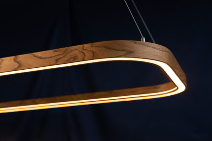 Деревянная основа светильника Modo обеспечивает прочность и экологичность изделия. Светодиодная лента потребляет мало энергии и обеспечивает яркое и равномерное освещение.